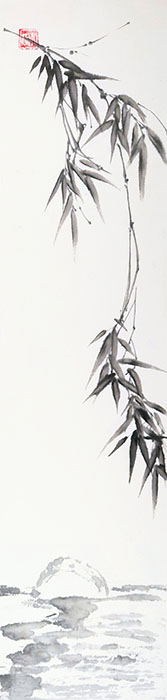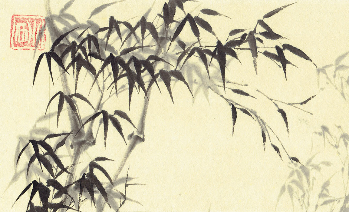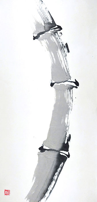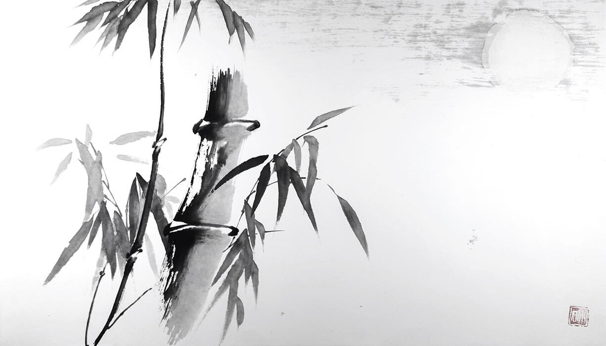 Ein geschwungener Bambusstab mit kräftigem Strich – Zeichen für Klarheit und Bewegung in Sumi-e-Technik.