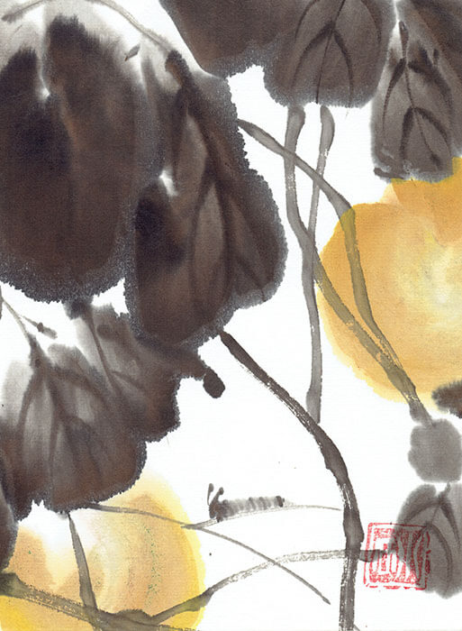 Heuschrecke und Quitten – 16,5×12